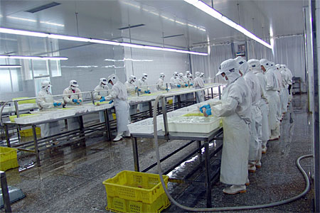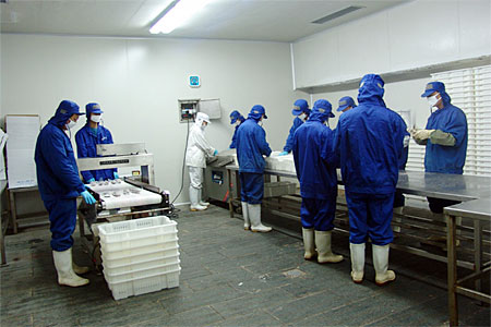本公司是一家以水產(chǎn)品加工為主的出口型企業(yè),于2004年9月建成并正式投產(chǎn)。公司廠房完全按照歐洲聯(lián)盟的標(biāo)準(zhǔn)設(shè)計(jì)施工,目前占地14000平方米,建筑面積8000平方米,其中加工車間1600平方米。公司日速凍能力達(dá)100噸,儲(chǔ)藏庫容量為5000噸,主要加工蟹類、貝類、頭足類及魚蝦類水產(chǎn)品,產(chǎn)品銷往日本、東南亞及歐盟地區(qū)。
